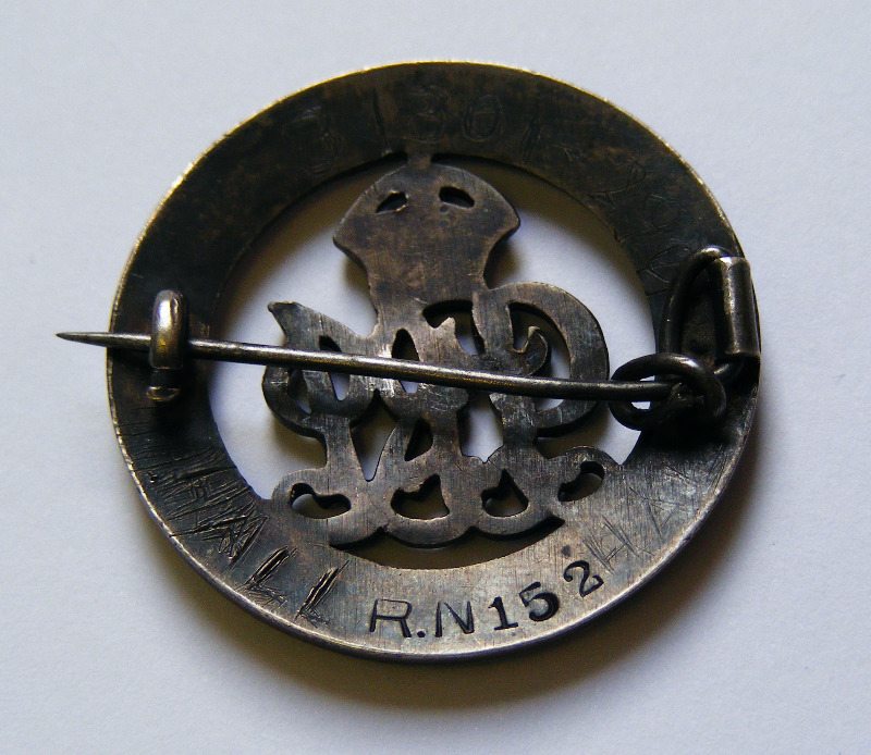 Silver War Badge to PO.241/S H. Hall RMLI Very early badge numbered RN152 £25.00 Sold, Please contact us with your details and we'll contact you when similar items come into stock!
